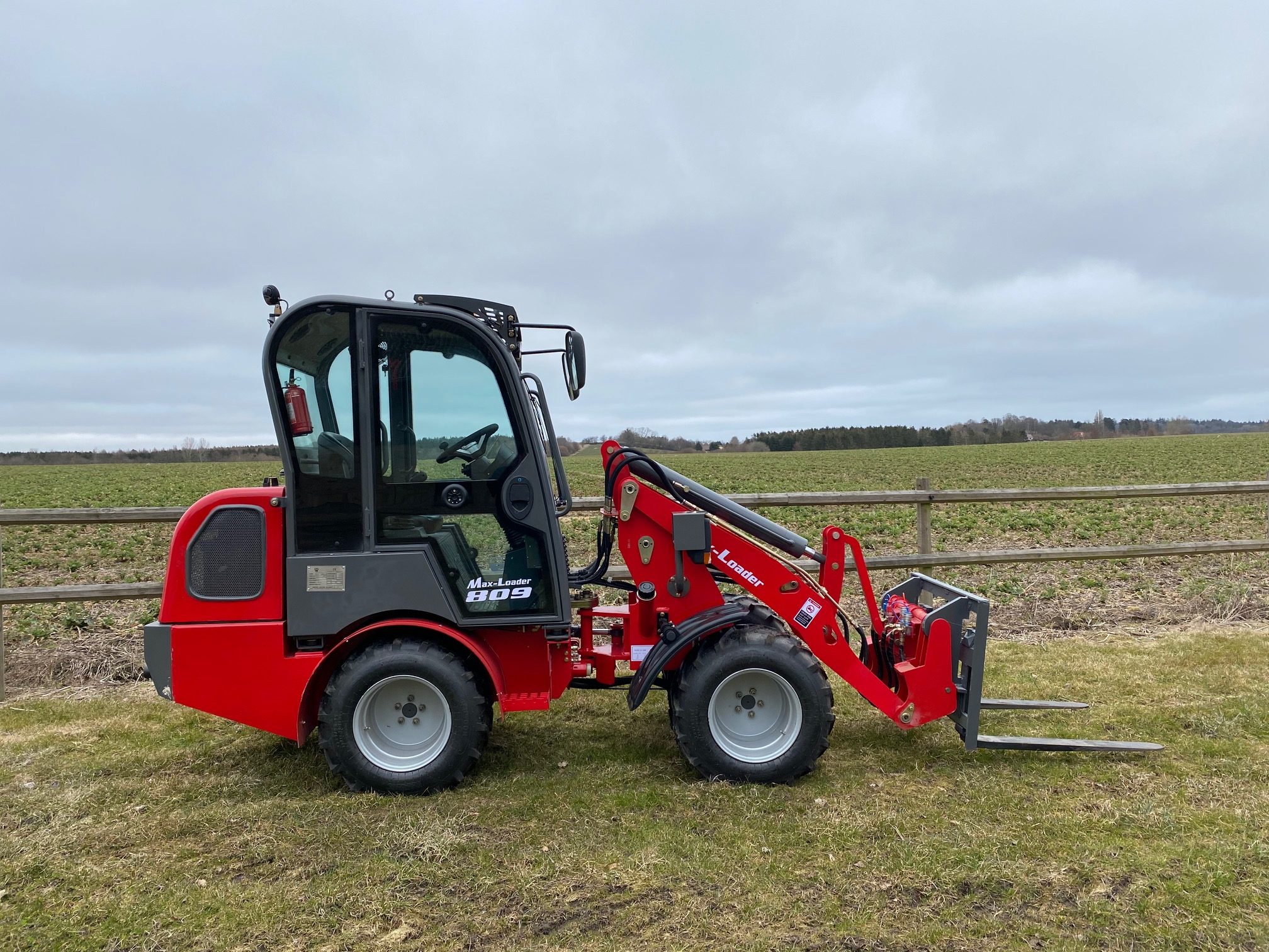 Max Loader 809 en en stærk 4wd maskine, der er nem at køre, kørselsretning skiftes let med en vippekontakt. Det lave tyngdepunkt gør maskinen meget stabil, og sikker at køre for selv den uerfarne bruger. Transmissionen er hydrostatisk 1 gear frem og 1 gear bak. Brede dæk gør maskinen velegnet til kørsel under alle forhold. Bemærk den lave vægt på kun 2300 kg gør at den kan flyttes på de fleste maskintrailere. Euroskifte løfter op til ca max 900 kg.